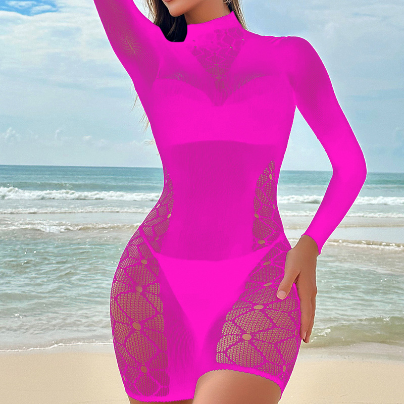 Sexy mesh bodysuit, one-piece sleepwear, bodycon dress, long-sleeved backless jumpsuit