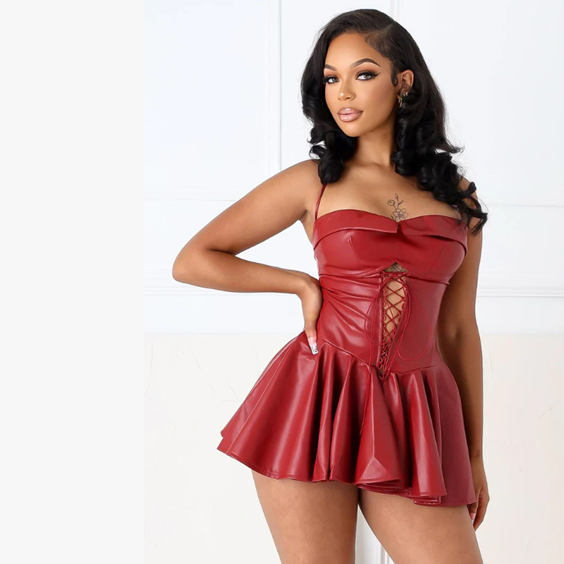 This stylish strapless dress perfectly embodies a bold yet minimalist style. The figure-hugging cut accentuates graceful curves, while the tie-back design adds a touch of playfulness and sexiness.